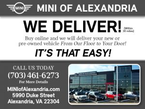 Buy online and MINI of Alexandria will deliver your New or Pre-Owned vehicle from our floor to your door! It’s that easy!
