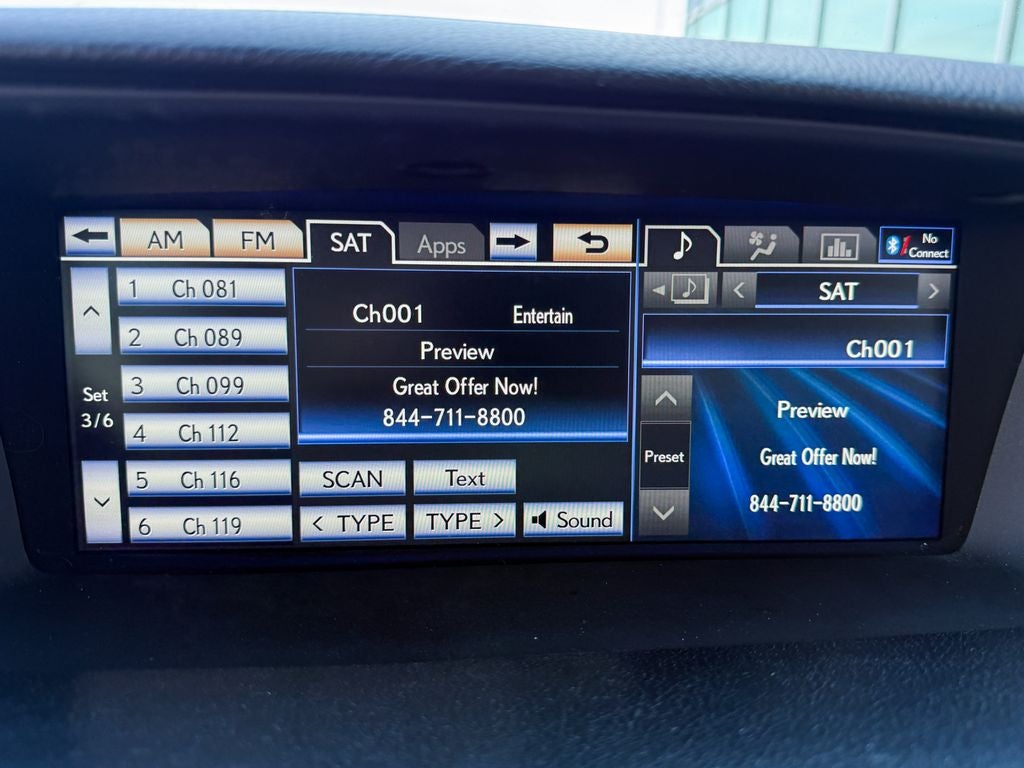 - Radio: Lexus Premium AM/FM/DVD/HD Audio System -inc: WMA/MP3 capability, 5.1 surround sound, 12 speakers, Bluetooth® streaming, advanced voice recognition, aux and iPod/USB input plugs, digital signal processing w/Automatic Sound Levelizer (ASL), electronic crossover network, Gracenote music management system, integrated SiriusXM satellite radio receiver (90-day trial subscription), MP3 sound enhancement, rear glass-imprinted radio antenna w/separate FM diversity antenna, text to speech SMS w/navigation and theft-deterrent design