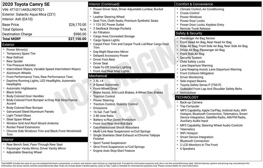 - Vehicle Name: Toyota Camry