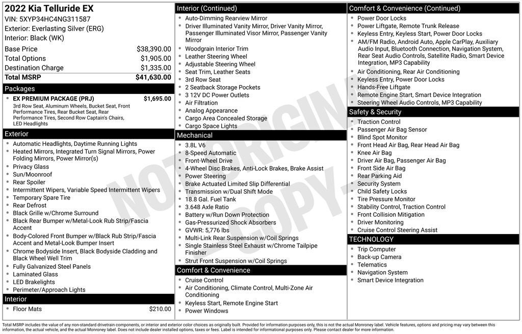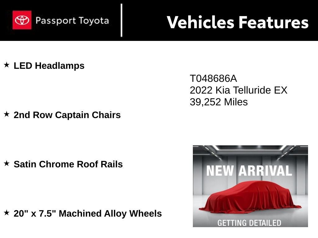 We're confident that this exceptional vehicle will exceed your expectations. Visit our showroom and let us demonstrate how the 2022 Kia Telluride EX can enhance your driving experience and enrich your life. We look forward to the opportunity to earn your business.