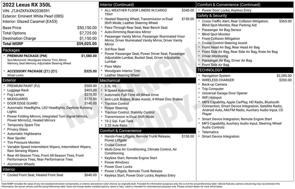 2022 Lexus RX 350L White 3.5L V6 DOHC 24V AWD Automatic