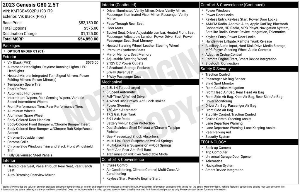 2023 Genesis G80 2.5T Vik Black AWD I4 8-Speed Automatic
