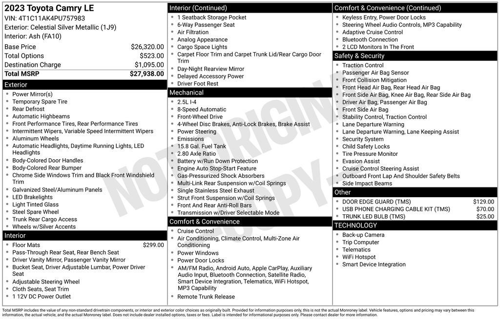 Discover the perfect blend of style, technology, and reliability in this exceptional 2023 Toyota Camry LE. This meticulously maintained vehicle is ready to elevate your driving experience and exceed your expectations.