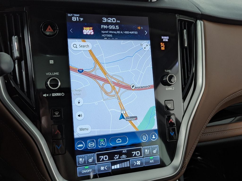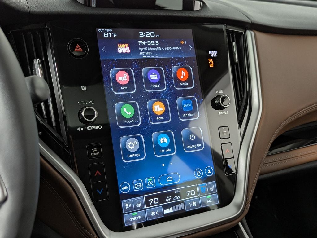 - Radio: Subaru 11.6" Multimedia System w/Navigation -inc: AM/FM stereo, HD Radio, valet mode, multi-touch gesture high resolution display screen, voice activated controls and navigation, Bluetooth® audio streaming and hands-free phone connectivity w/SMS text messaging (refer to subaru.com for cell phone compatibility), Near Field Communication (NFC), TomTom navigation software w/what3words, iPod control capability, SiriusXM w/360L (4 months free trial/subscription required after), SiriusXM Traffic (3 years free trial/subscription required after), SiriusXM Travel Link (3 years free trial/subscription required after), smartphone integration w/full screen view and wireless connection for Android Auto and Apple CarPlay, USB and Over The Air (OTA) audio system update, USB/Map Over The Air (MOTA) TomTom navigation system update (3 years free map updates), audio/Bluetooth® steering wheel control switches, harman/kardon surround sound system w/12 speakers and 576 watt equivalent maximum output amplifier, 3.5mm illuminated front auxiliary input jack, illuminated front and rear USB-A and USB-C input/charge ports, CD player w/MP3/WMA/CRR/RW file capability and roof mounted satellite and connected services