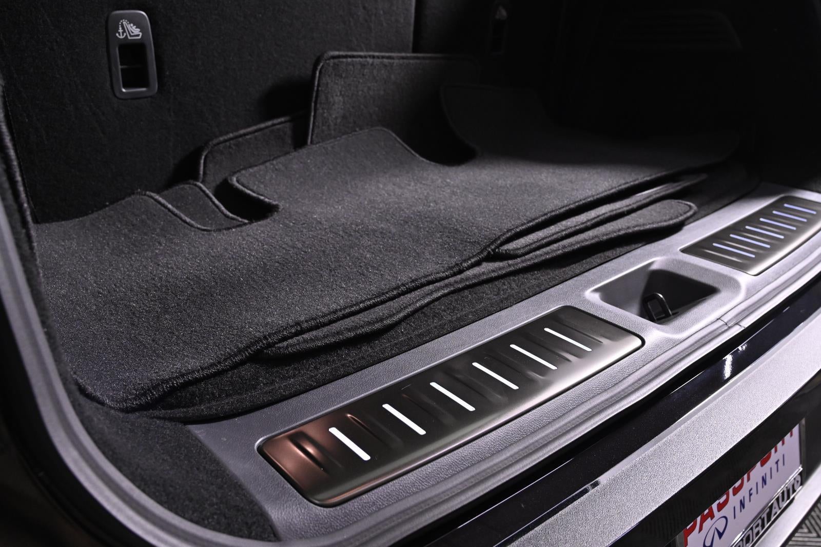 MINERAL BLACK, STONE GRAY, SEMI ANILINE LEATHER-APPOINTED SEATING SURFACES, [C03] 50 STATE EMISSIONS, [B10] SPLASH GUARDS, [E10] PREMIUM PAINT, [M93] DARK CARGO PACKAGE, [N96] INFINITI RADIANT DARK ILLUM CARGO SCUFF PLATES, [K12] DARK ILLUMINATED KICK PLATES, [L12] CARPETED FLOOR MATS W/CAPTAINS CHAIRS ON 3RD ROW TRAY, [B94] BLACK ROOF RAIL CROSSBARS, [S55] LITERATURE KIT